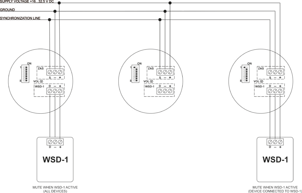 It is possible to build a network consisting of following devices: SA-K7N, SA-K5N, SAOZ-Pk2. These signaling devices have the same synchronization mechanism which allows creating networks (synchronization).