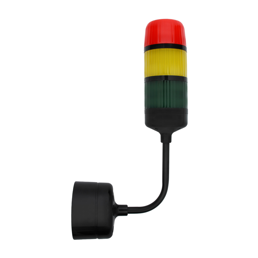 The alarm device is supplied directly from the 230 V grid. The enclosure is made of sturdy plastic and the optical tower shades use light diffusion technology to provide high visibility of the optical signal. A built-in impulse power supply unit ensures high energy efficiency. The design of control inputs enables the use of different electric network phases (e.g. colour 1 from phase L1, colour 2 from L3). A separable multi-connector is used to connect the device with control circuits.