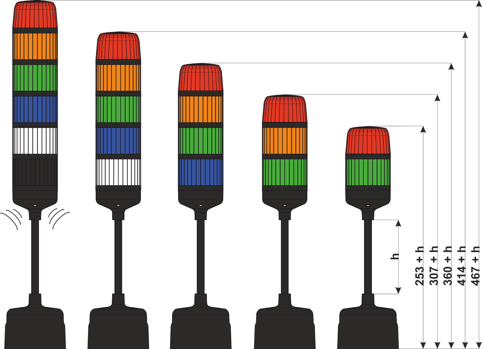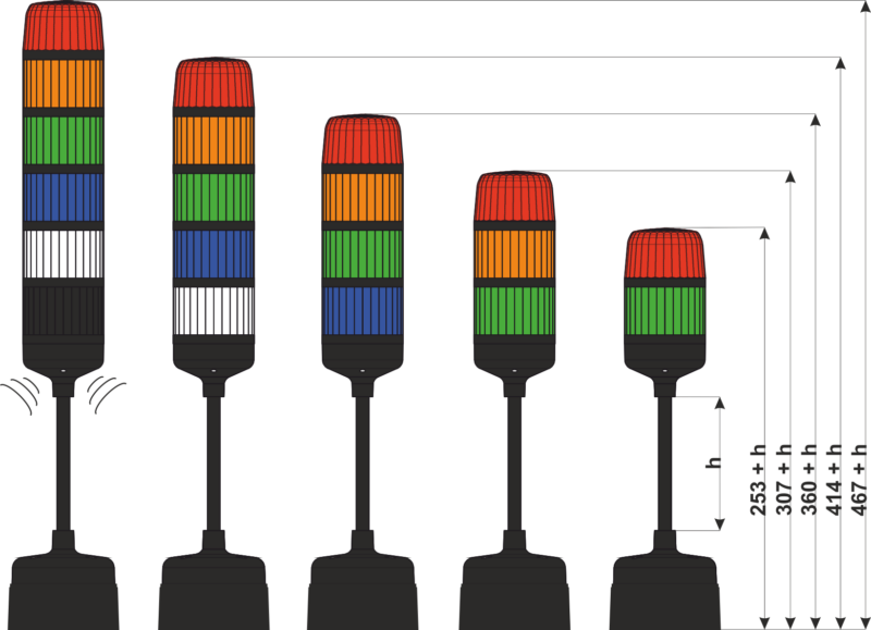 There is possibility of ordering the signal tower with the height of distance element to the tower basis: h=125 or h=275.