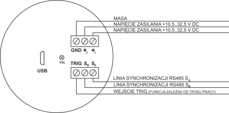 Podłączenie napięcia zasilania na odpowiednie zaciski wyzwala generowanie sekwencji alarmowej zgodnie z zaprogramowanymi ustawieniami.